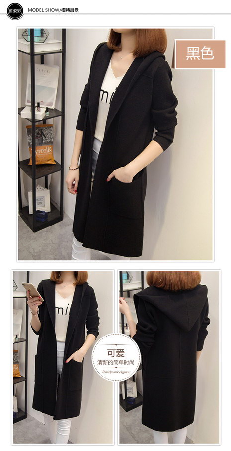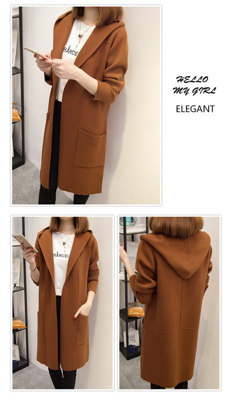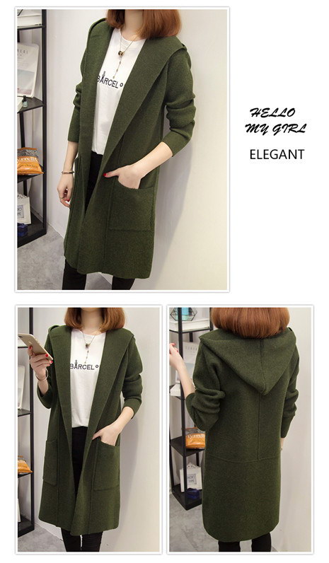秋冬宽松中长款连帽加厚毛衣外套
